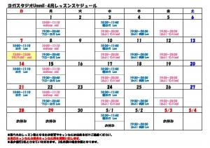 ヨガスタジオUmmilウミールです😃4月、GW一週目のレッスンスケジュールになります。新しい生活に向けて準備を整える方もいらっしゃると思いま