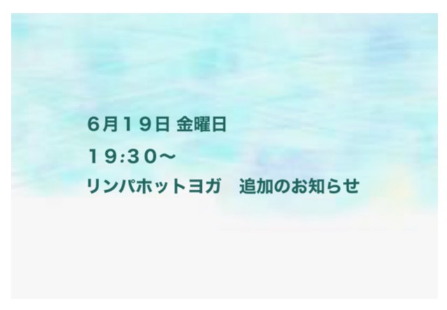 6/19㈮19:30~【ホット】リンパヨガ・emi担当で