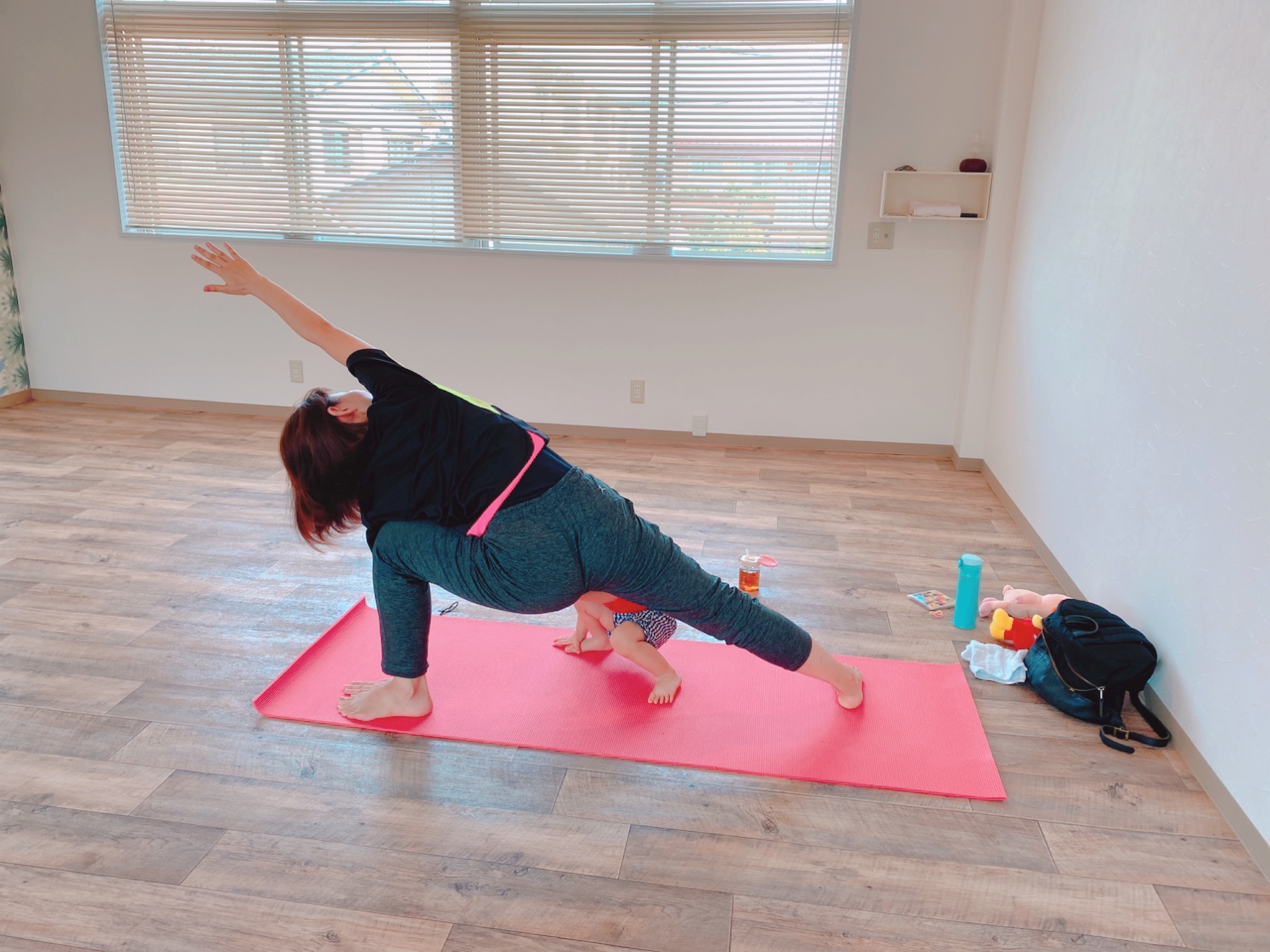 ママヨガでも、参加される方に合わせながら無理のない範囲で色んなポーズにチャレンジしていただいてます♪