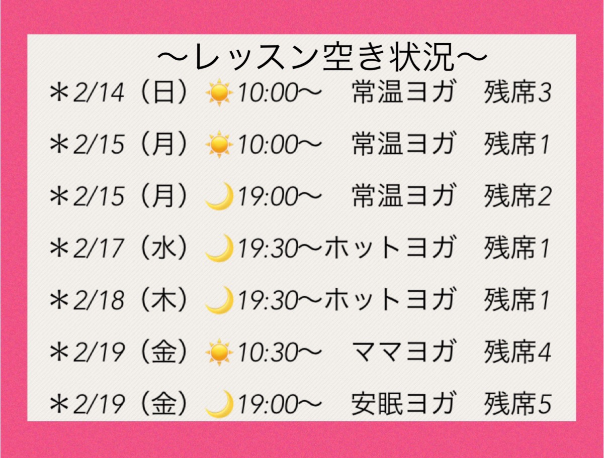 来週のホットヨガ枠、どちらも残席1ずつ空いてますので、ご要チェックです👀✨✨
