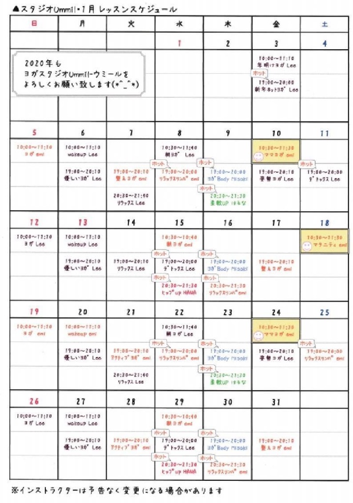 2020年1月レッスンスケジュール こんばんは🌙😃❗ 2020年(キラキラ) 1月のレッスンスケジュールです😃 オリンピックイヤーの2020年‼️ ヨガで身体を気持ちよく動かすことから 始めましょう😃 お知らせ 2019/12/03 ummil タグ:スケジュール