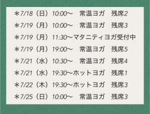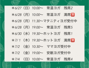 レッスン残席状況です♪